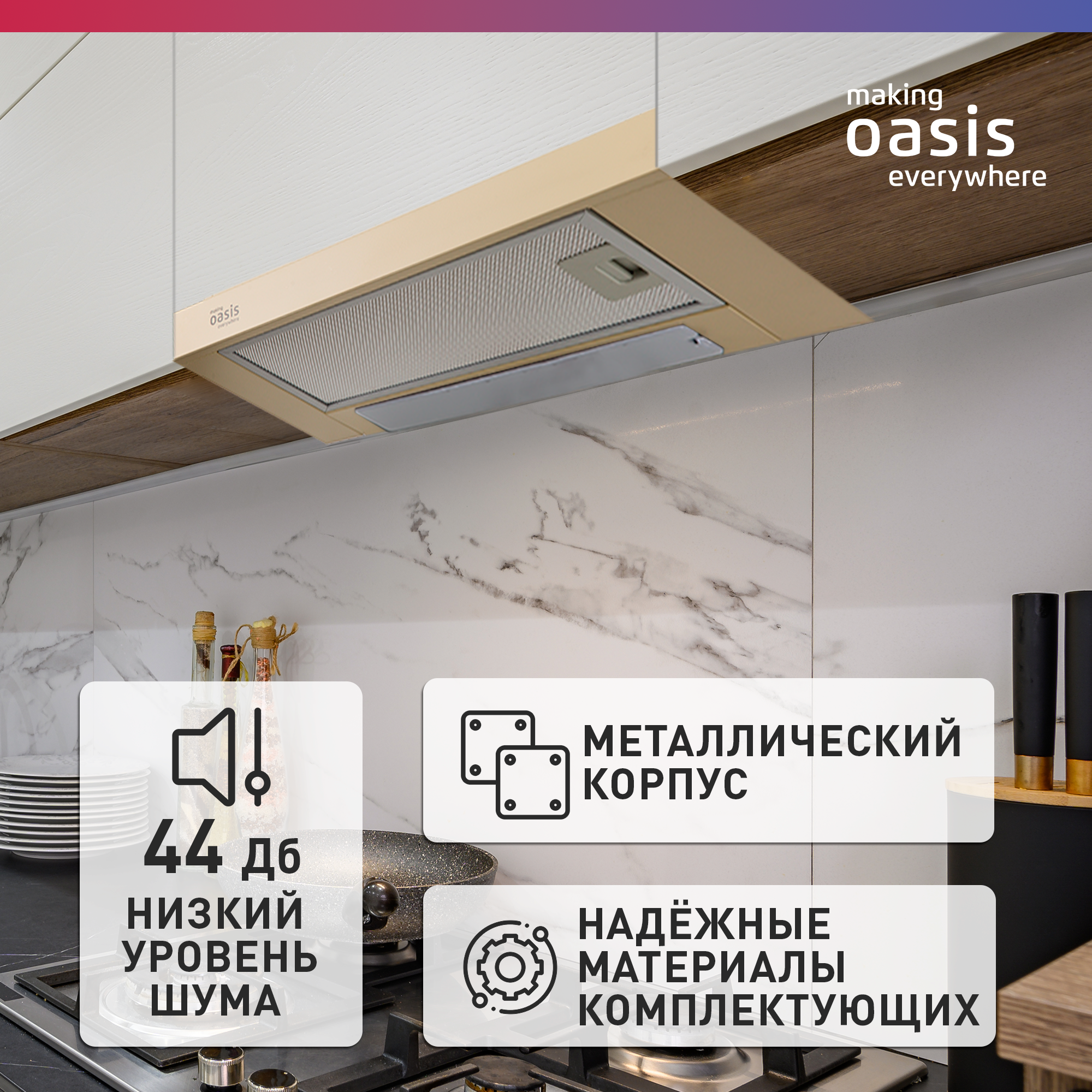 Вытяжка выдвижной блок Oasis UV-60I (F) /БЕЖ., 500 куб. м/ч
