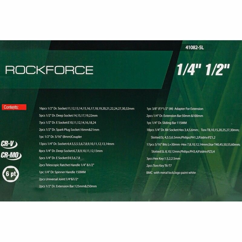 Набор торцевых головок и вставок ROCKFORCE RF-41082-5EURO, 108 предметов, 6-гранные, 1/2" и 1/4" DR 11 370 ₽