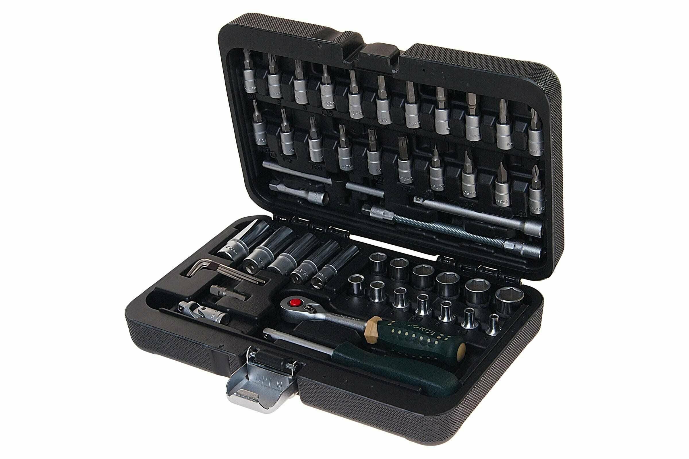 | Головки торцевые подробно | торцевые 6-ти гранные 1/4" длиной 25 мм: 4, 4.5, 5, 5.5, 6, 7, 8, 9, 10, 11, 12, 13, 14 мм; торцевые 6-ти гранные 1/4" длиной 50 мм: 6, 7, 8, 9, 10, 11, 12, 13 мм; головки-биты 1/4" длиной 35 мм: H3, H4, H5, H6, T8, T10, T15, T20, T25, T27, T30, SL4, SL 5.5, SL6, РН1, РН2, PZ1, PZ2; головки торцевые 6-ти гранные 1/2" длиной 38 мм: 10, 11, 12, 13, 14, 15, 16, 17, 18, 19, 20, 21, 22, 24, 27, 30, 32 мм (усиленные 17, 19, 21 мм); головки торцевые 6-ти гранные 1/2" длиной 77 мм: 14, 15, 17, 19, 22 мм (усиленные 17, 19 мм); головки свечные 1/2": 16, 21 мм; трещотка 1/4" 48 зубов; удлинитель 1/4": 50, 100 мм; гибкий удлинитель 1/4": 100 мм; карданный шарнир 1/4"; адаптер 3/8"(F)х1/2"(M); удлинитель 1/2": 125, 250 мм; трещотка 1/2"; карданный шарнир 1/2"; битодержатель 1/2"(F)х5/16"(F) |