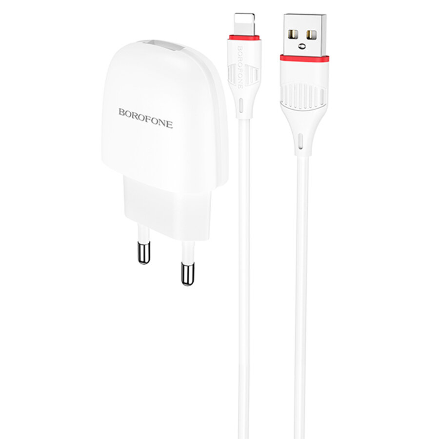 Borofone Сетевое зарядное устройство Borofone BA49A, USB, 2.1 А, кабель Lightning, 1 м, белое