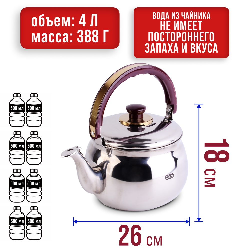 Чайник со свистком MAYER&BOCH 4 литра, из нержавеющей стали 1037 информация: