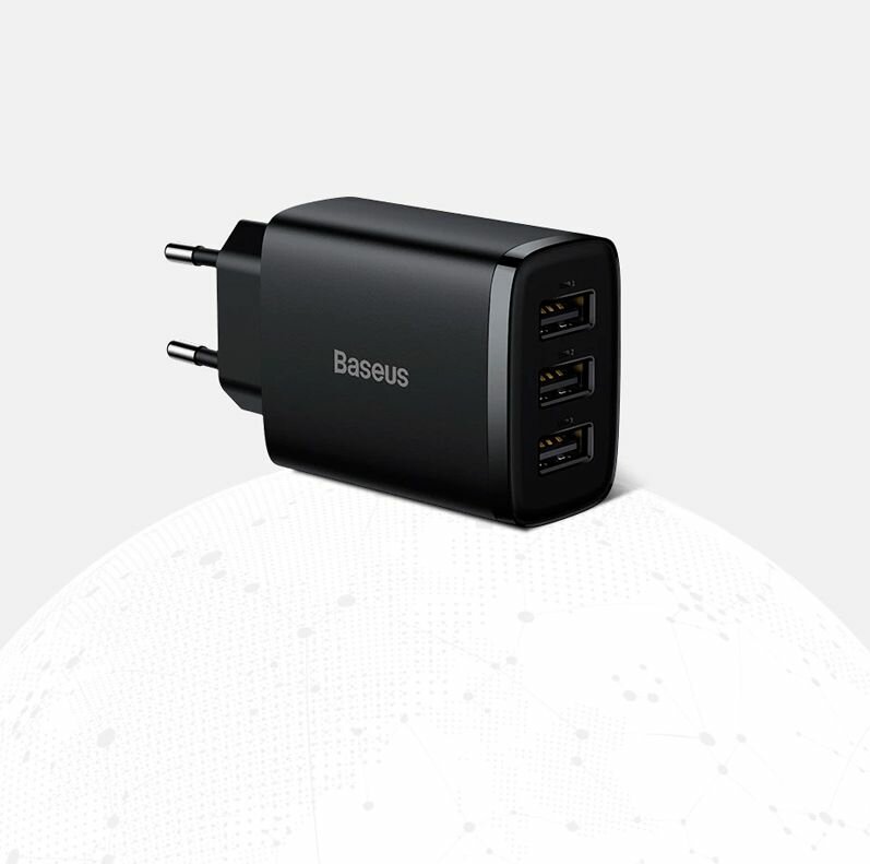 Сетевое зарядное устройство Baseus Compact Charger 17W 3xUSB-A (CCXJ020101) черный информация: