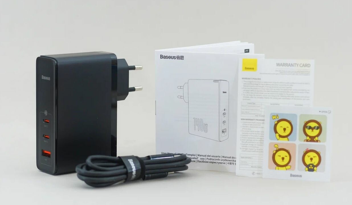 | Дополнительная информация | Сетевое зарядное устройство Baseus GaN5 Pro Fast Charger 2C+U 140W EU Black(With Superior Series Fast Charging Data Cable Type-C to Type-C 240W(48V/5A)1m |