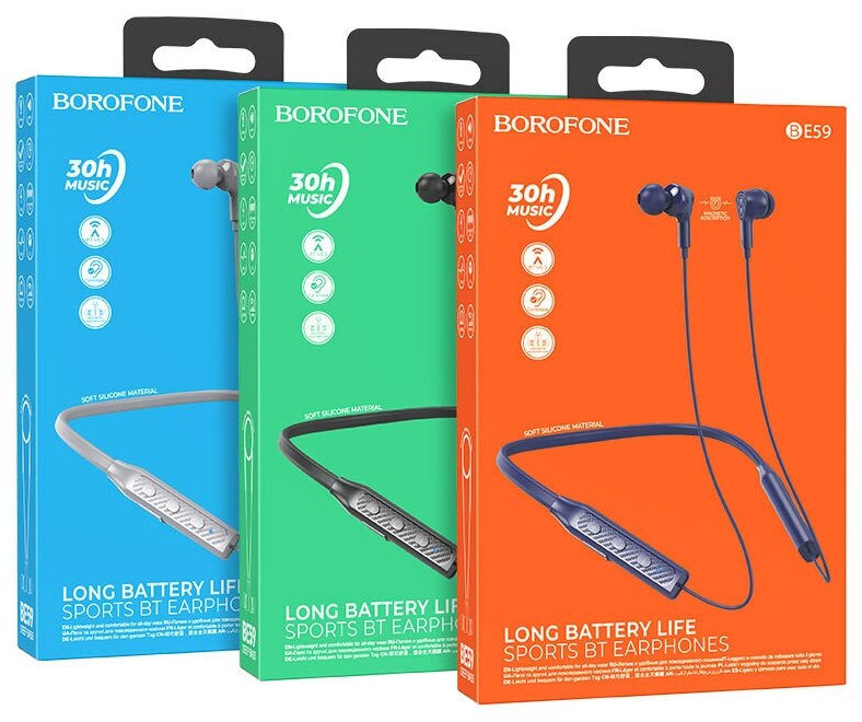 Наушники беспроводные Borofone BE59 с шейным силиконовым ободом, 30 часов работы, черные