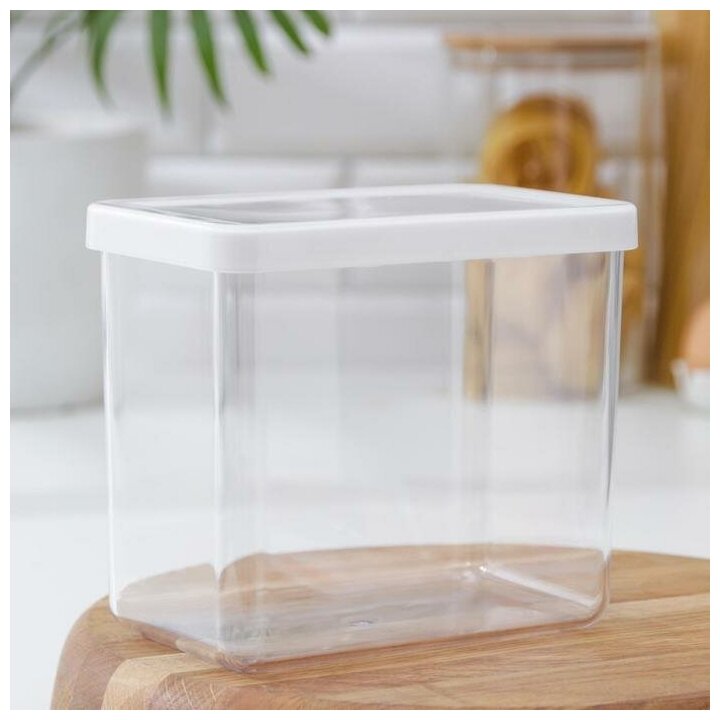 Ёмкость для сыпучих продуктов «Степ», 1,7 л, 16×10×14 см, цвет белый 1 400 ₽