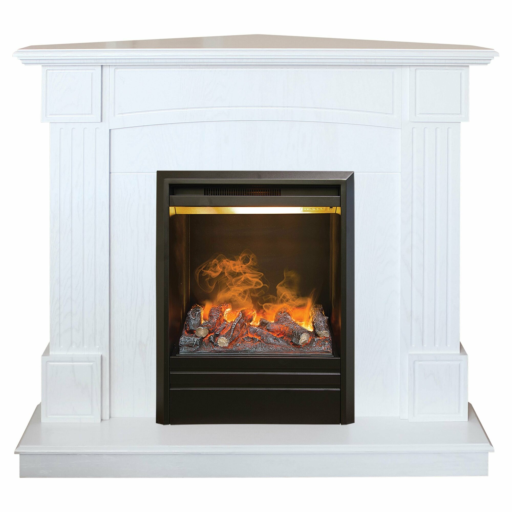 Электрокамин RealFlame Dominica Corner WT МДФ с очагом Majestic, звук потрескивания дров, обогрев, имитация пламени