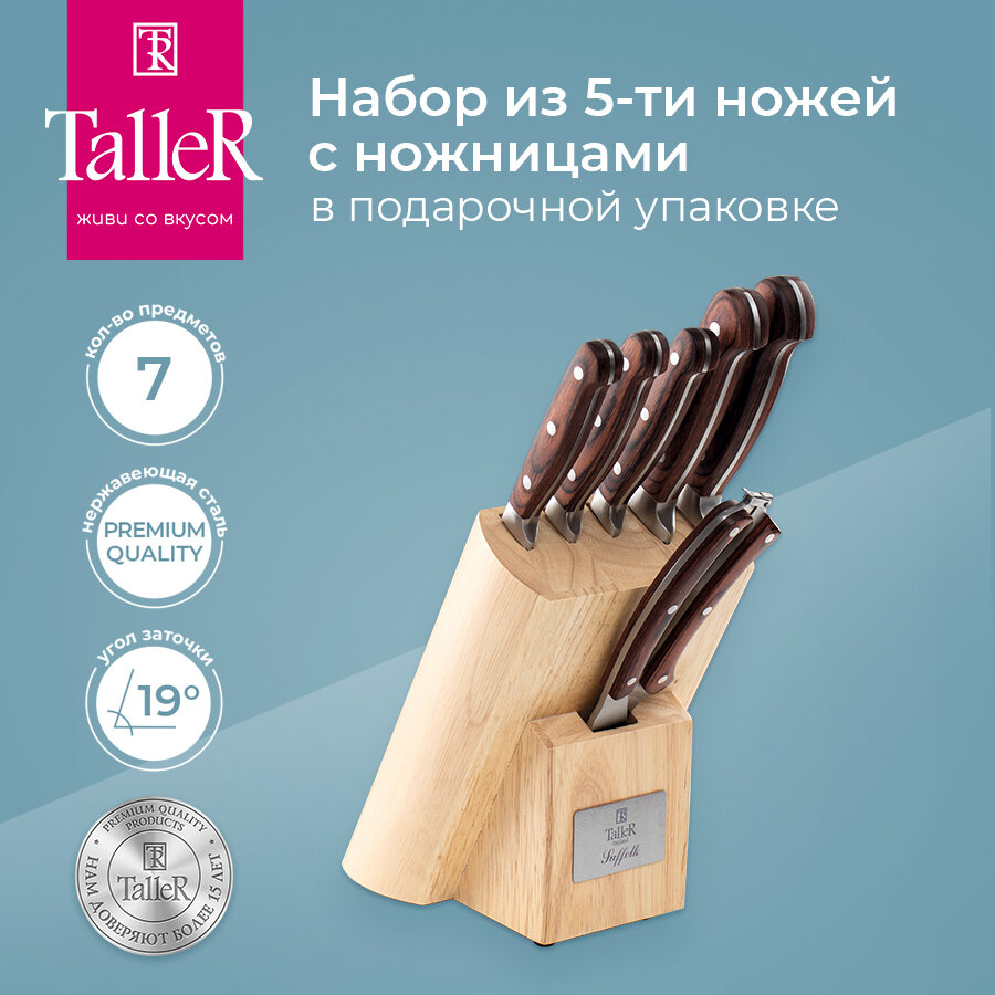 Отзывы на Набор ножей с подставкой TalleR TR-22001 Саффолк, нержавеющая сталь
