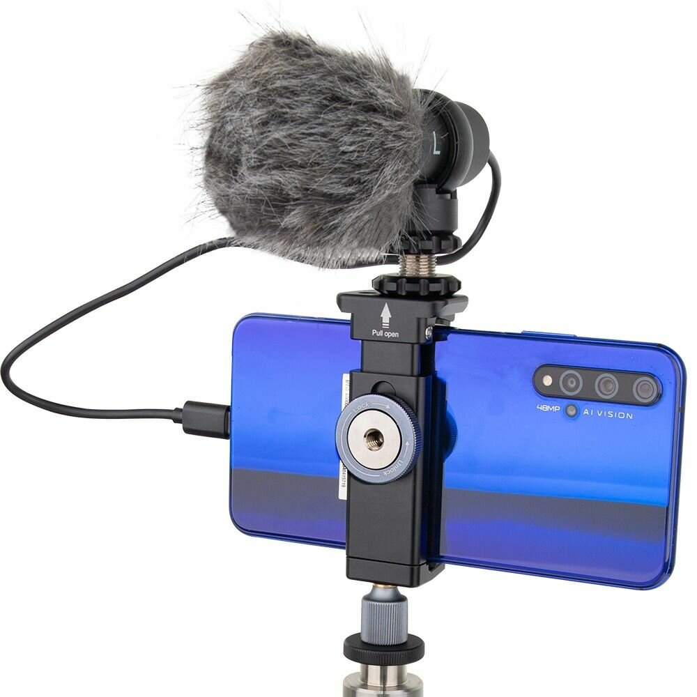10 цен на Конденсаторный микрофон для смартфона с разъёмом Type-C. С держателем для телефона. В комплекте футляр.
