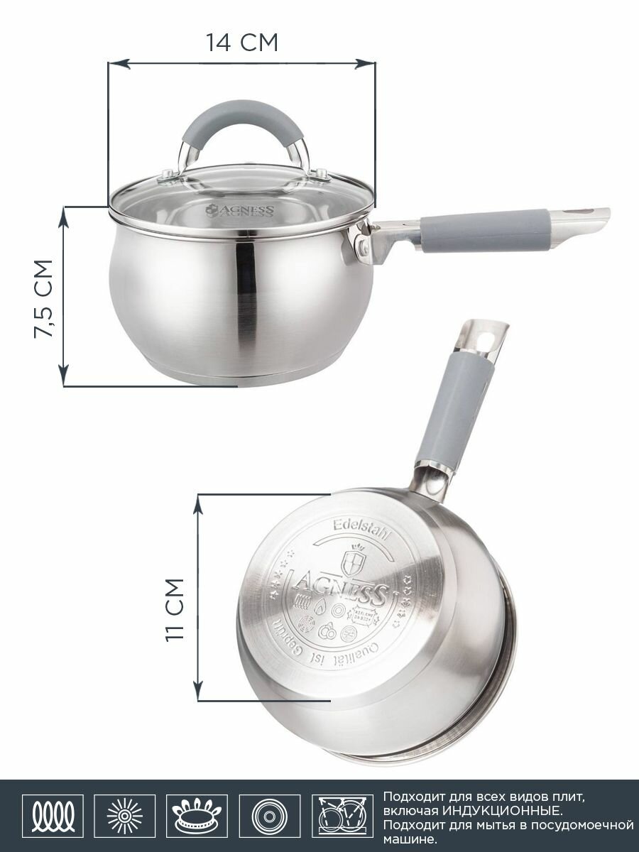 Ковш кухонный Agness со стеклянной крышкой, серия "Apple" 1 л., 14 х 7,5 см информация:
