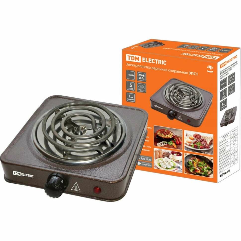 10 цен на Электроплита TDM Electric ЭПД1, 1000 Вт, 1 конфорка, эмаль, коричневая