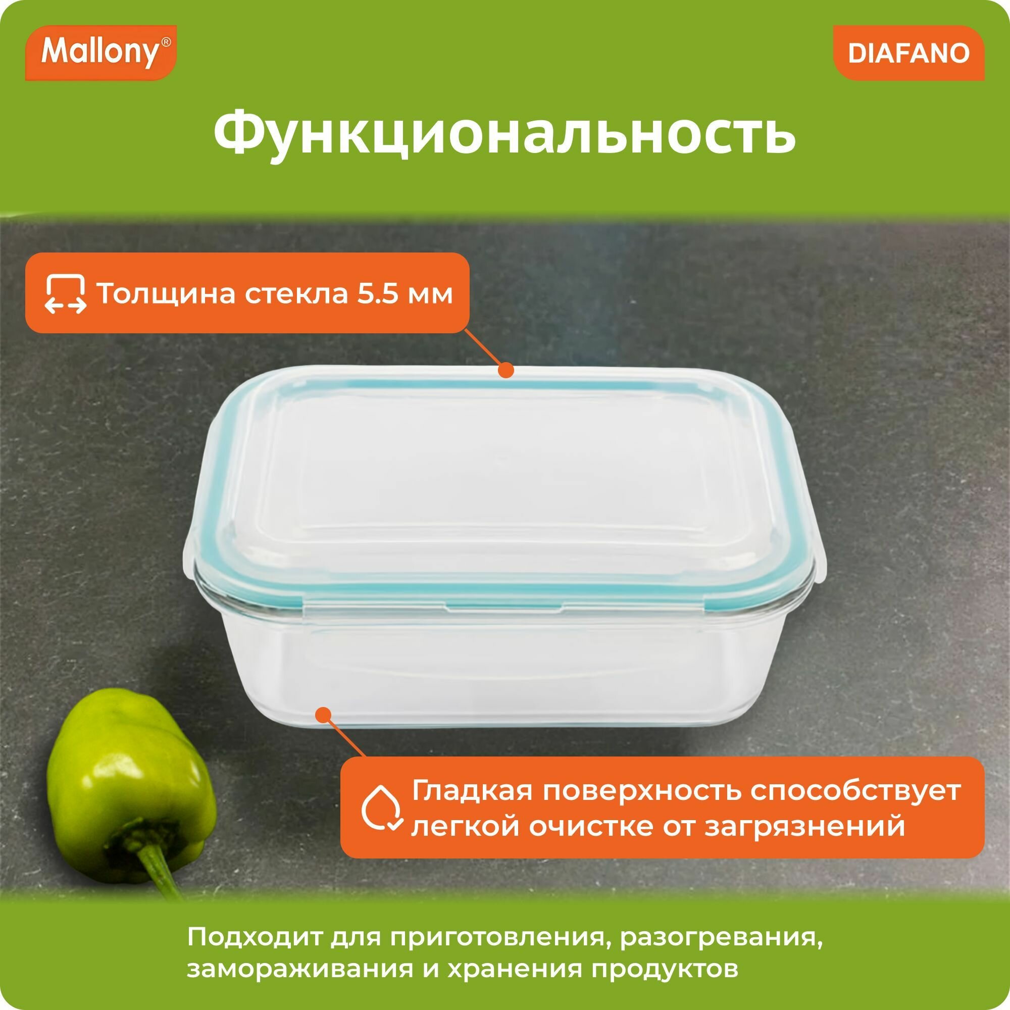 Отзывы на Контейнер Mallony DIAFANO 1,5 л из жаропрочного стекла, ланч-бокс, стеклянный контейнер для еды и продуктов с крышкой, 2 шт.