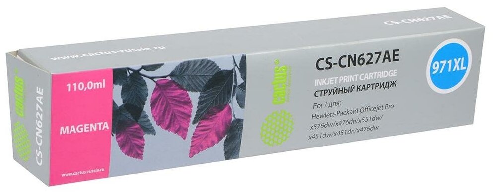 Картридж струйный Cactus Cs-cn627ae 971xl пурпурный (110мл) для HP DJ Pro X476dw/X576dw/X451dw Cs-c .