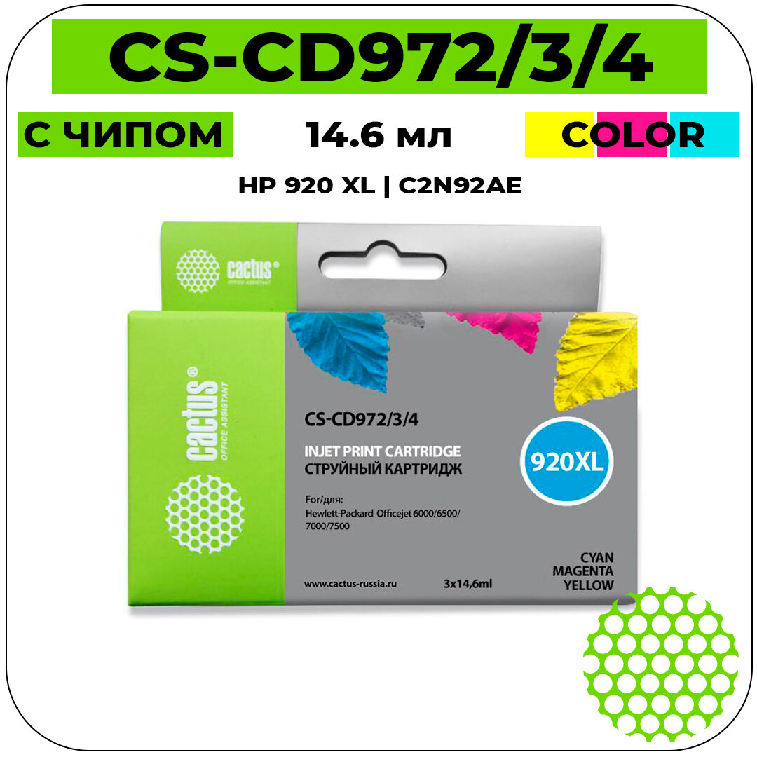 Картридж Cactus CS-CD972/3/4 совместимый струйный картридж (HP 920 XL - C2N92AE) 1200 стр, набор цветной информация: