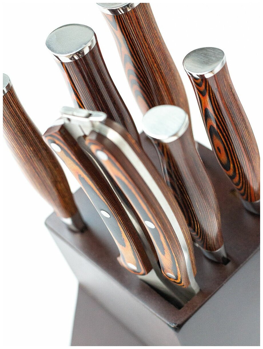 | Типы ножей в наборе | нож сантоку, нож для овощей, универсальный нож, нож для сыра, шеф-нож |