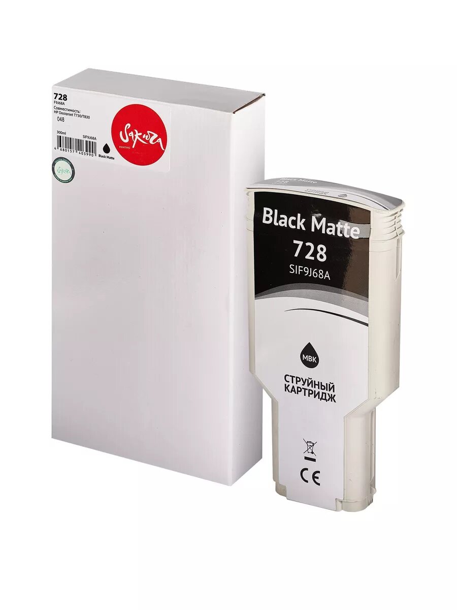 Струйный картридж Sakura F9j68a (728 Matte Black) для HP, черный матовый, 300 мл. Sif9j68a