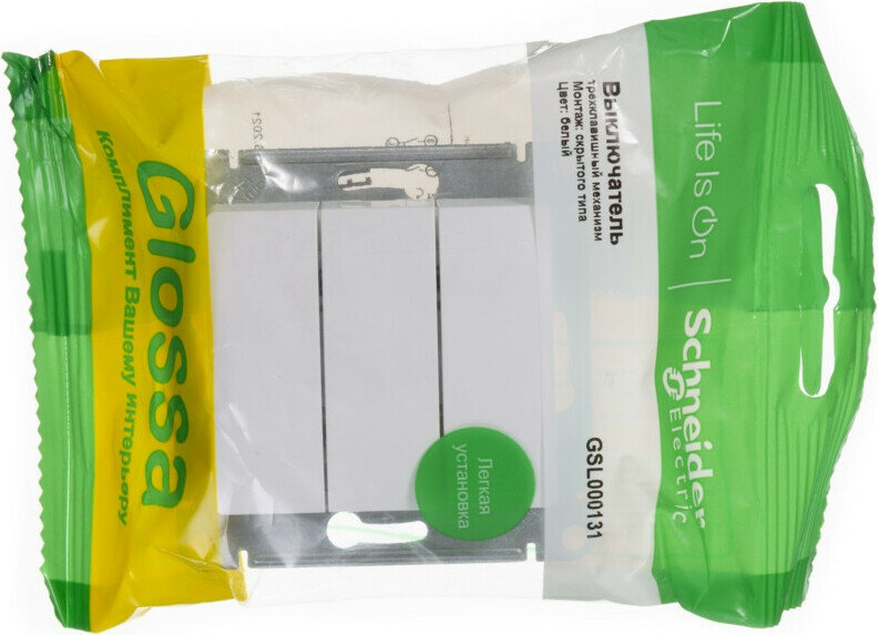 Отзывы на Выключатель трехклавишный Белый, сх.3, 10АХ Systeme Electric Glossa
