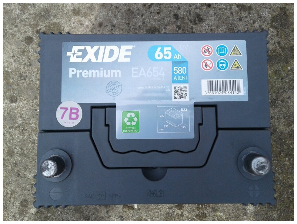 Автомобильный аккумулятор Exide Premium EA654, полярность обратная