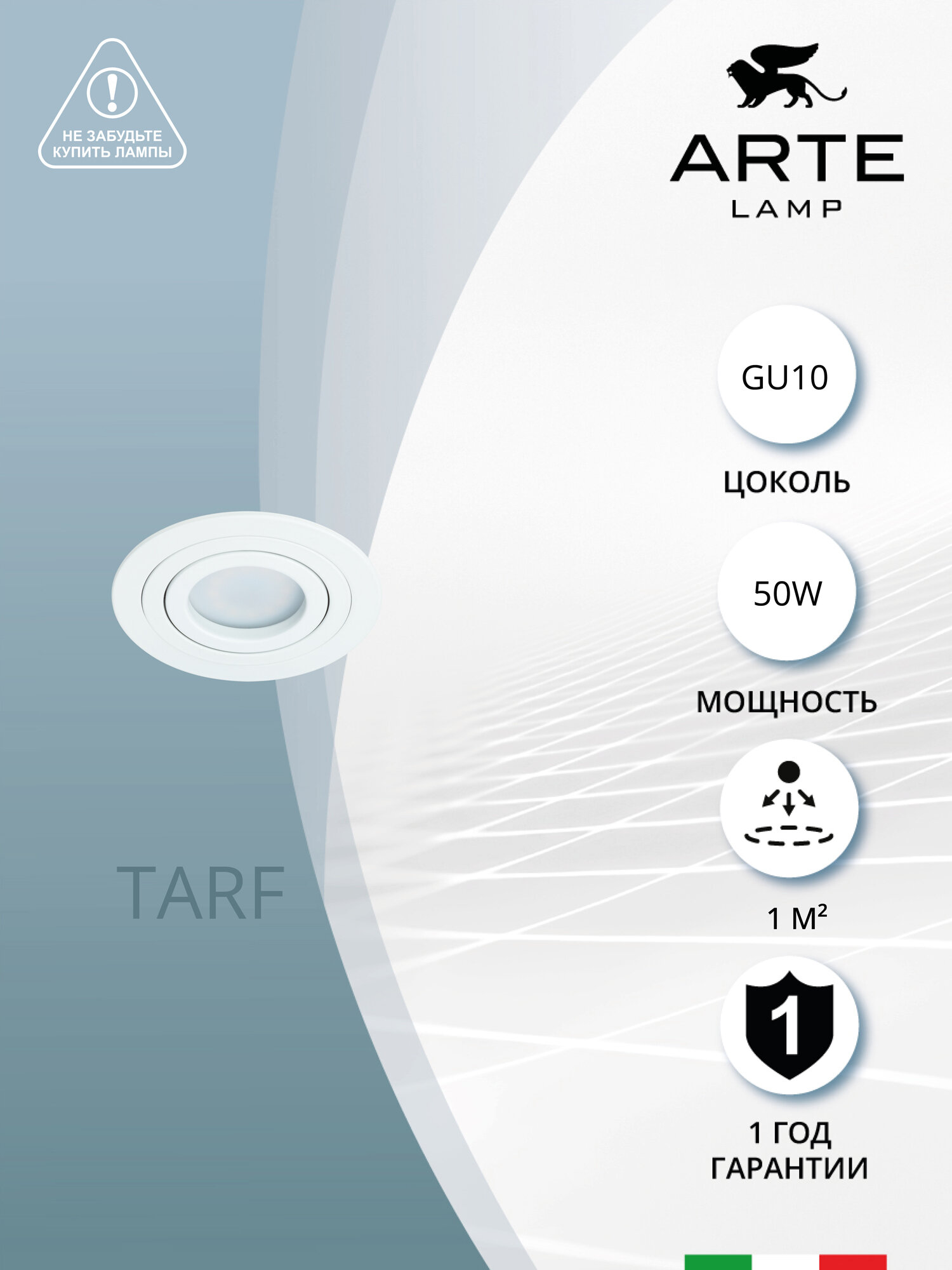 Отзывы на Встраиваемый светильник "Arte Lamp Tarf A2167pl-1wh", 50Вт, 1м², металл, белый, GU10