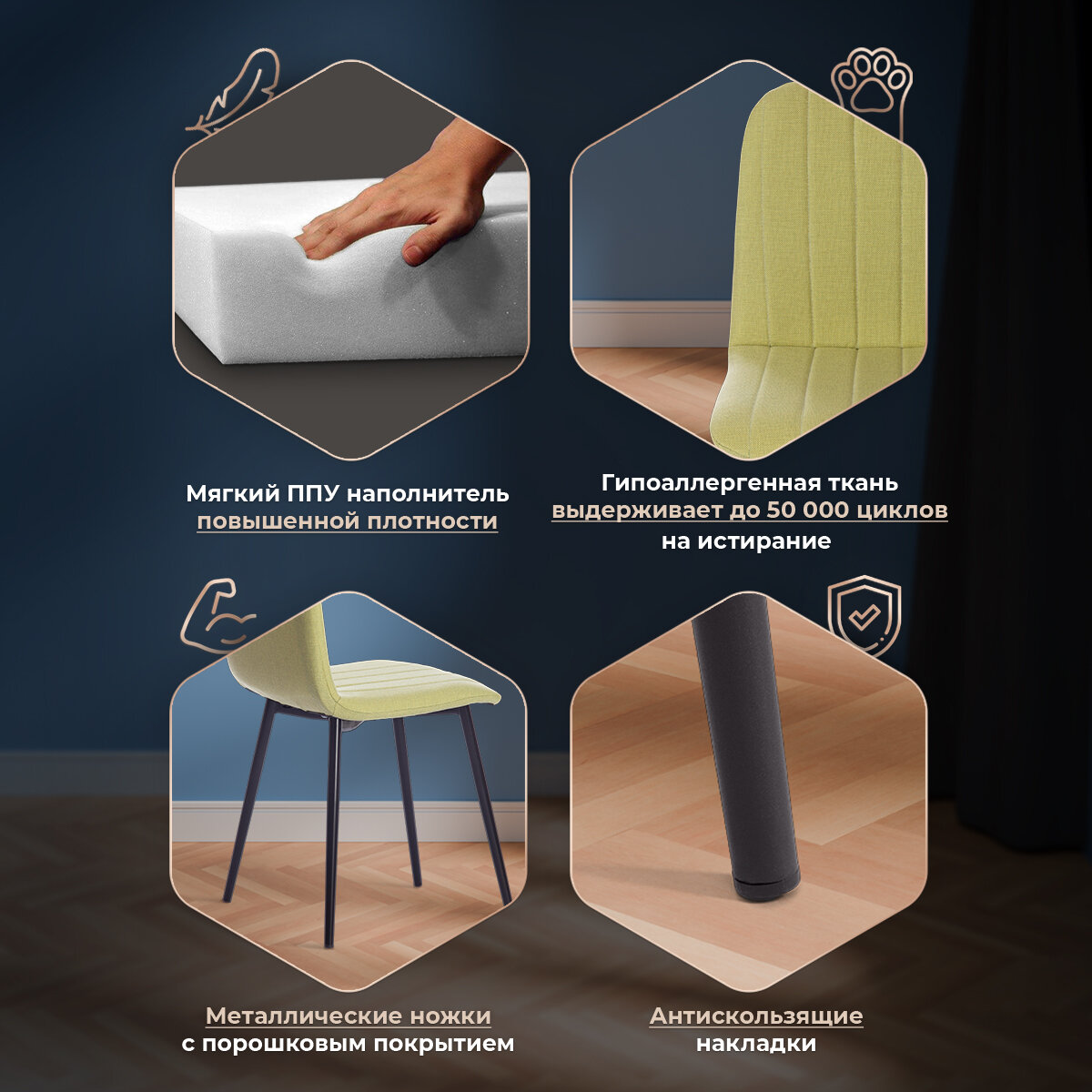 Комплект стульев TetChair ARC, ткань/металл, 46 х 52 х 88 см, фисташковый 64/черный (4 шт. в 1 упаковке)