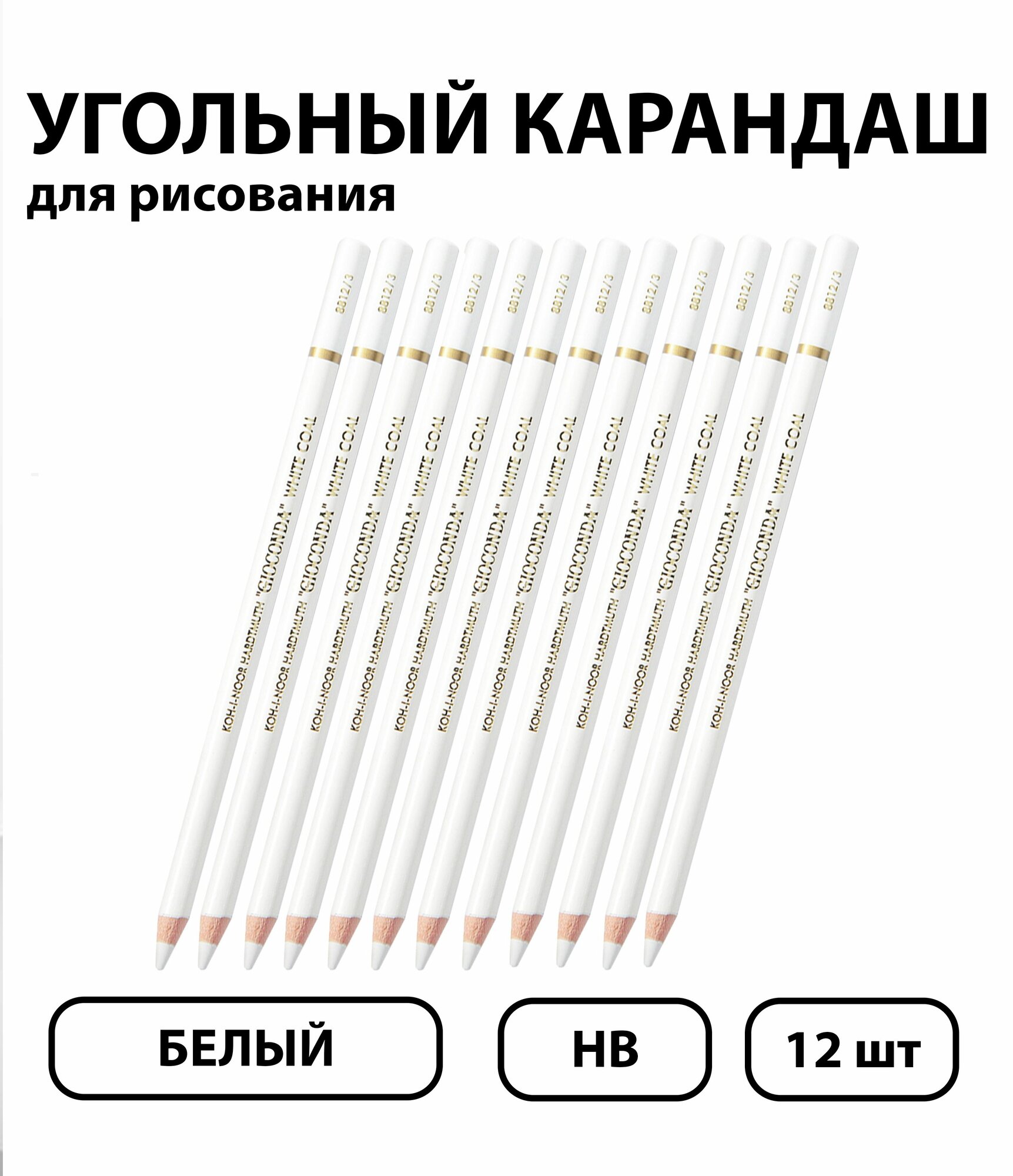10 цен на Набор 12 шт. - Угольный карандаш Koh-I-Noor "Gioconda Extra 8812" HB, белый, заточен