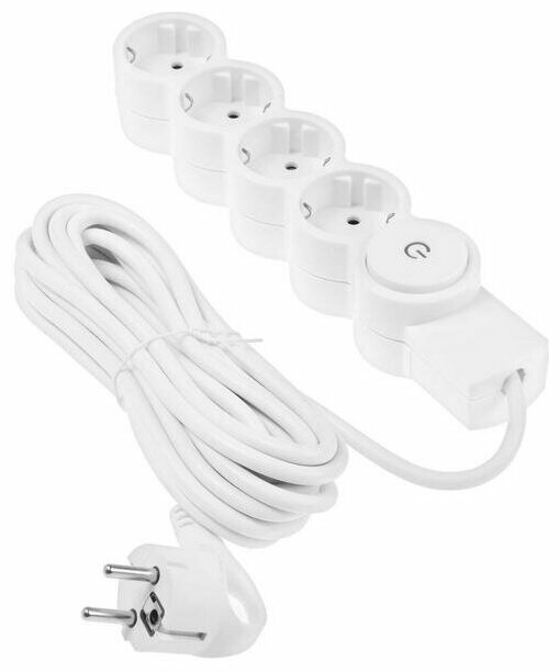 Отзывы на Удлинитель Düwi 4 розетки 5 м ПВС 3х0,75 кв.мм 10 А 2,2 кВт с кнопкой белый (32015 1)