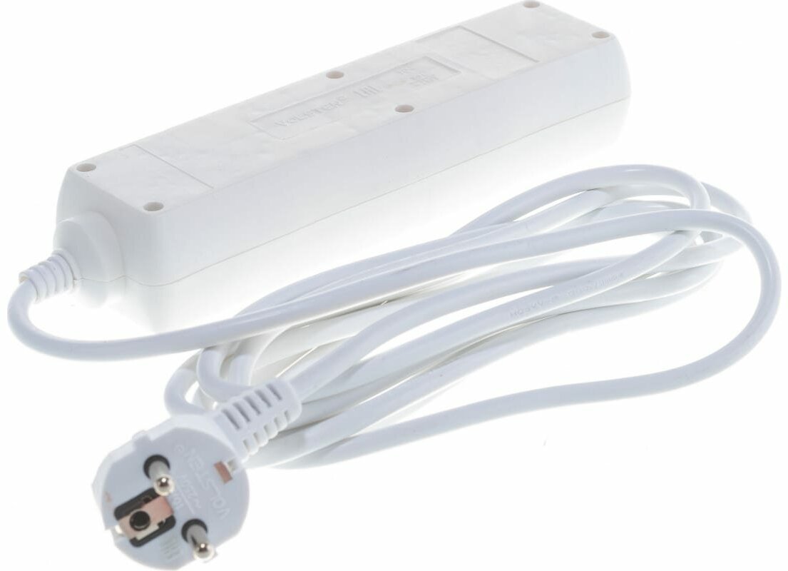 Удлинитель бытовой Volsten 12421 без заземления, провод ШВВП 2х0.75 - 1.5 м, белый, 6 А, 1300 Вт
