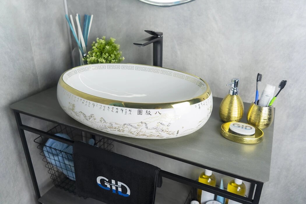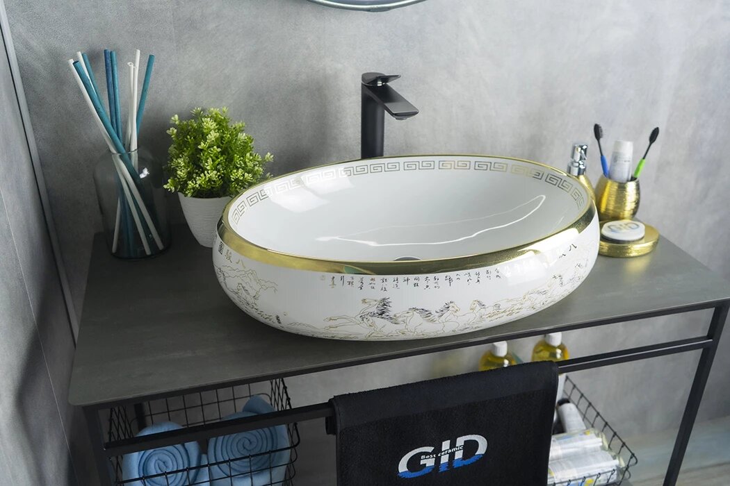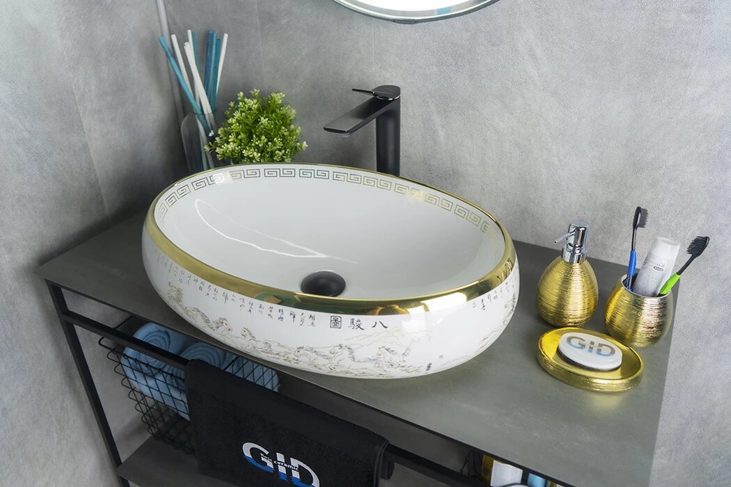Раковина Gid Color Edition Nc472 59x40x16 см накладная белая с золотым 9 400 ₽