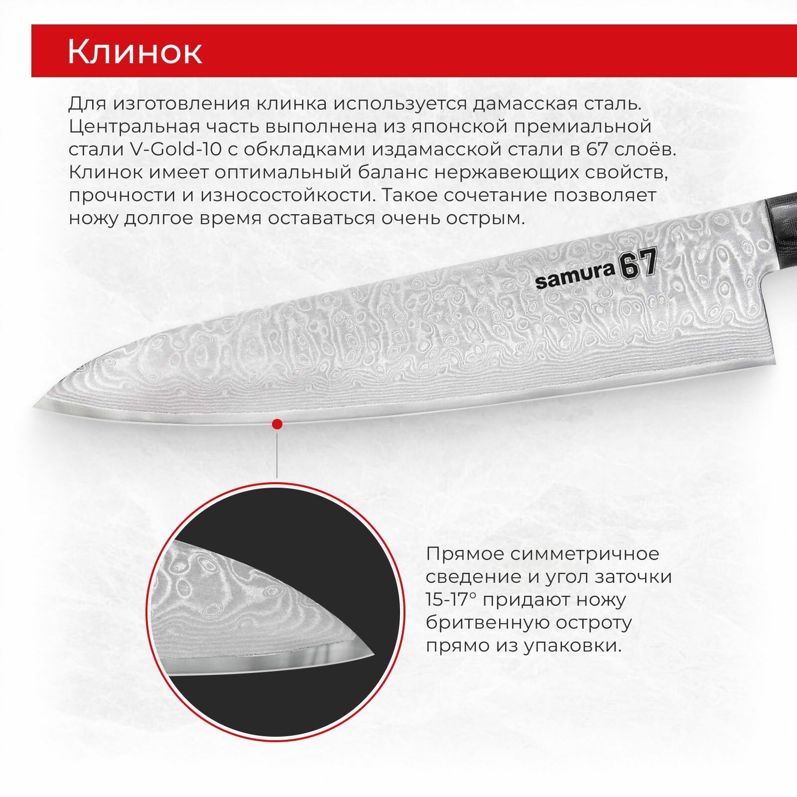 Отзывы на Нож кухонный поварской Samura 67 Damascus Гранд Шеф профессиональный SD67-0087M