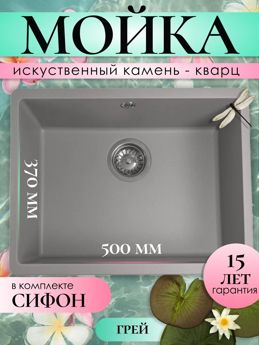 10 цен на Мойка,раковина для кухни каменная "Ring" 500, грей FS