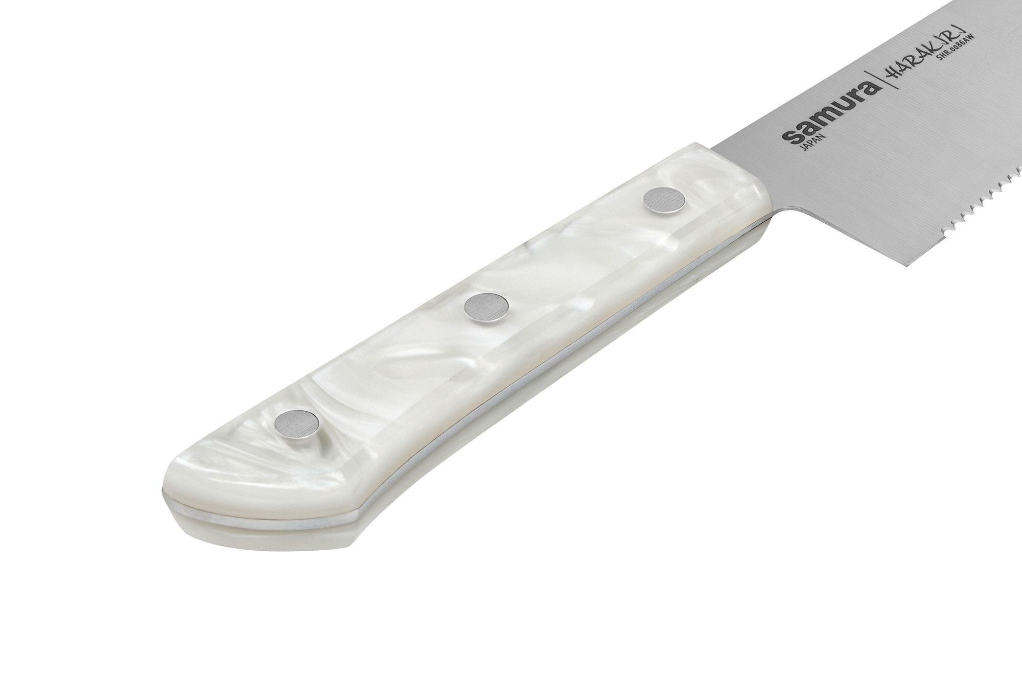 10 цен на Нож кухонный "Samura HARAKIRI" Шеф серрейтор 208 мм, корроз.-стойкая сталь, белый акрил,SHR-0086AW