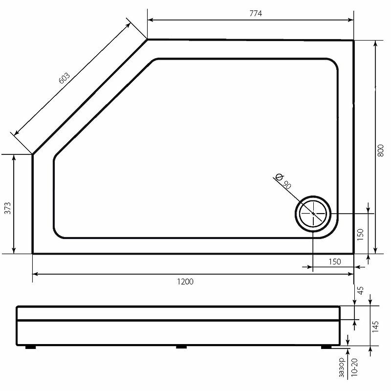 Характиристики этого товара не найдены!Отзывы на Акриловый поддон для душа / душевой Bas Пента 120х80 L ПН00064 Белый