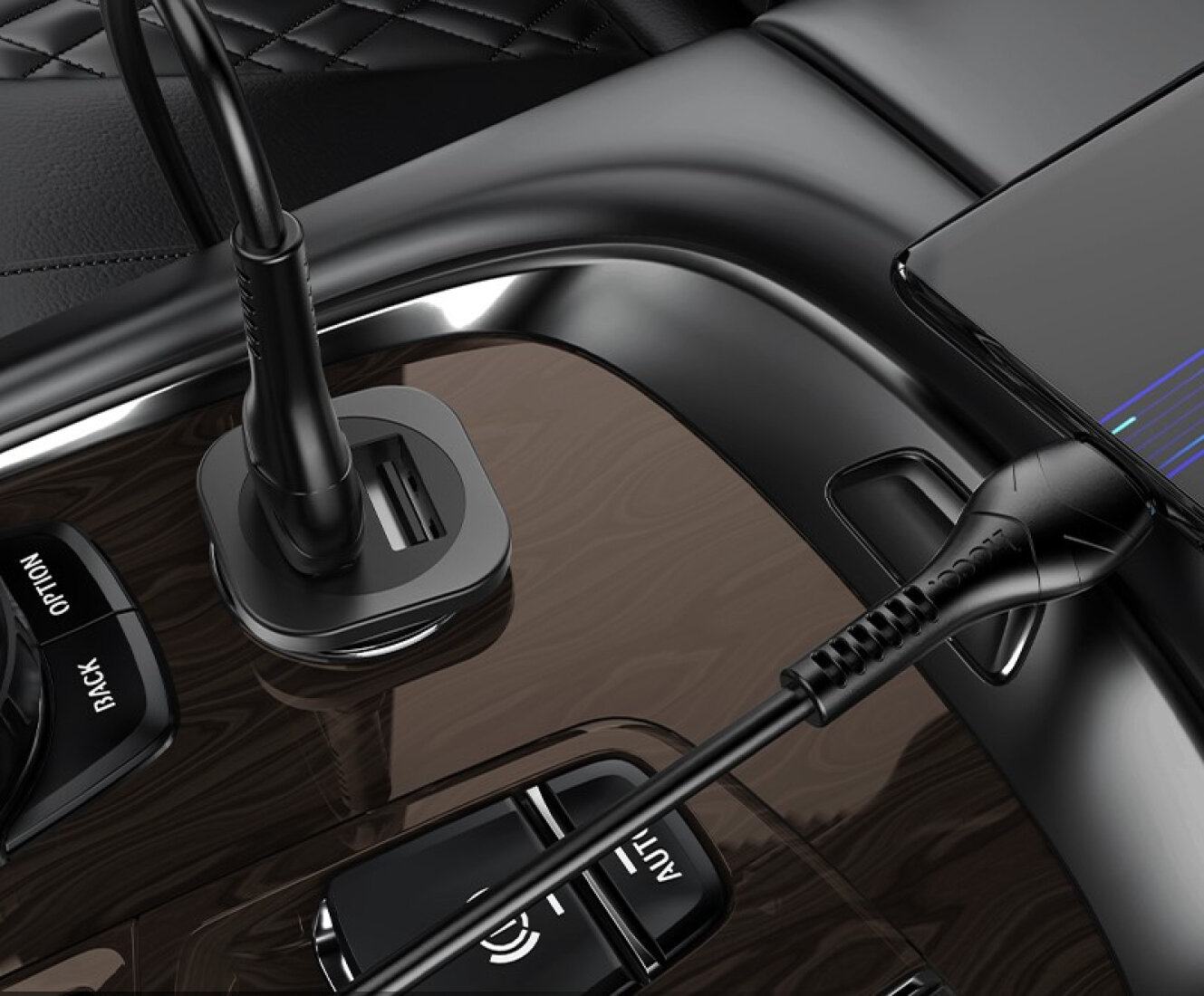 Отзывы на Автомобильное зарядное устройство, 2 USB 2.4A (NZ4), usb cable micro, HOCO, черный