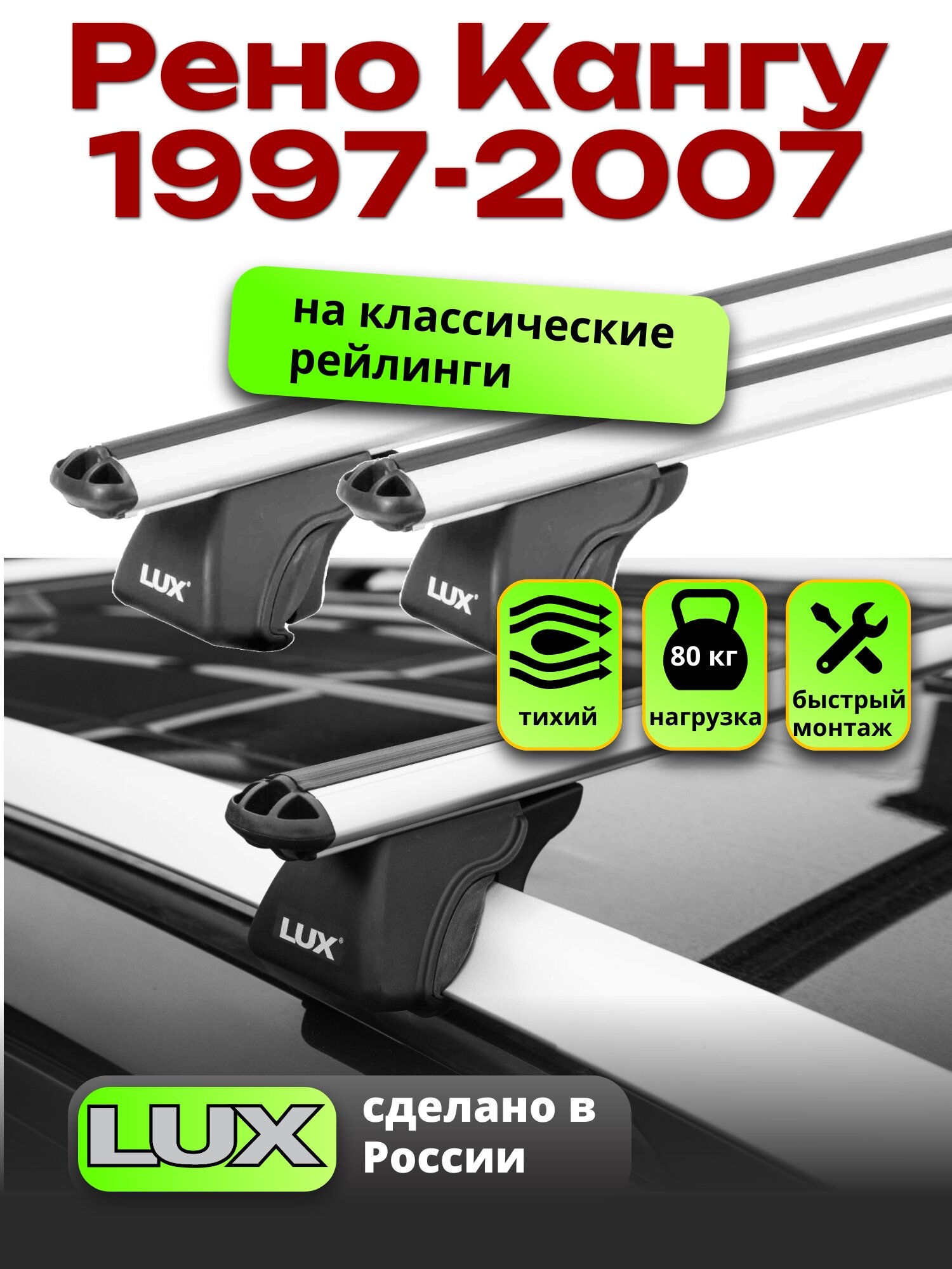 Багажник на крышу Рено Кангу 1997-2007 на рейлинги, LUX классик информация:
