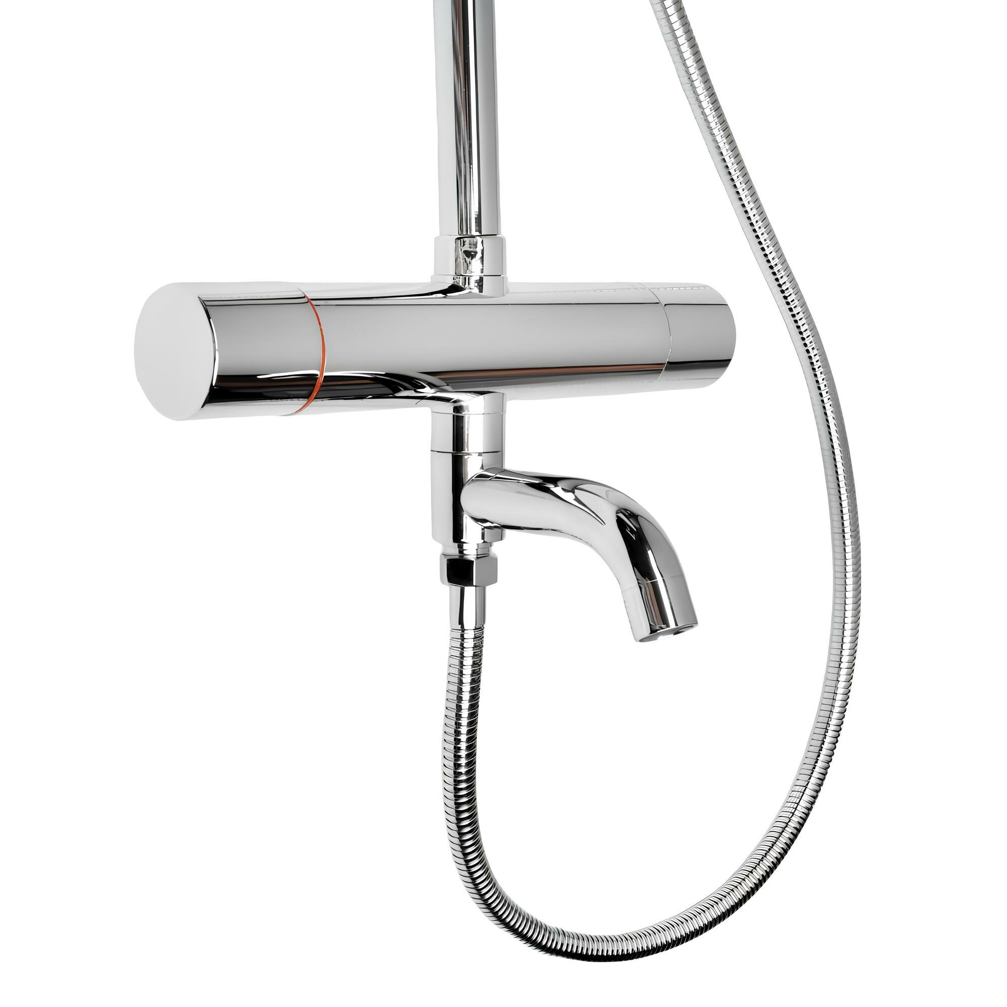 10 цен на Смеситель + стойка душевая "тропический душ" с термостатом, с двумя квадратными хромированными лейками
