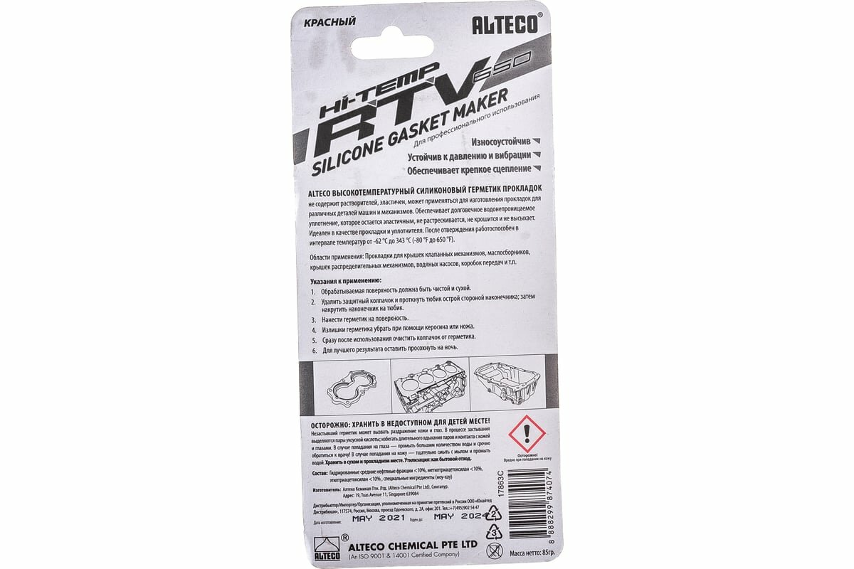 Высокотемпературный силиконовый герметик прокладок ALTECO 87407G00 информация: