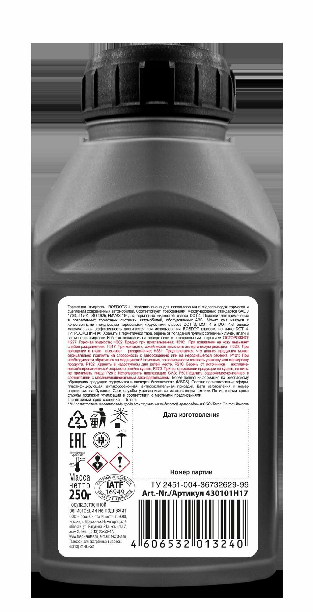 Жидкость тормозная DOT4 250 гр 430101H44 ROSDOT информация: