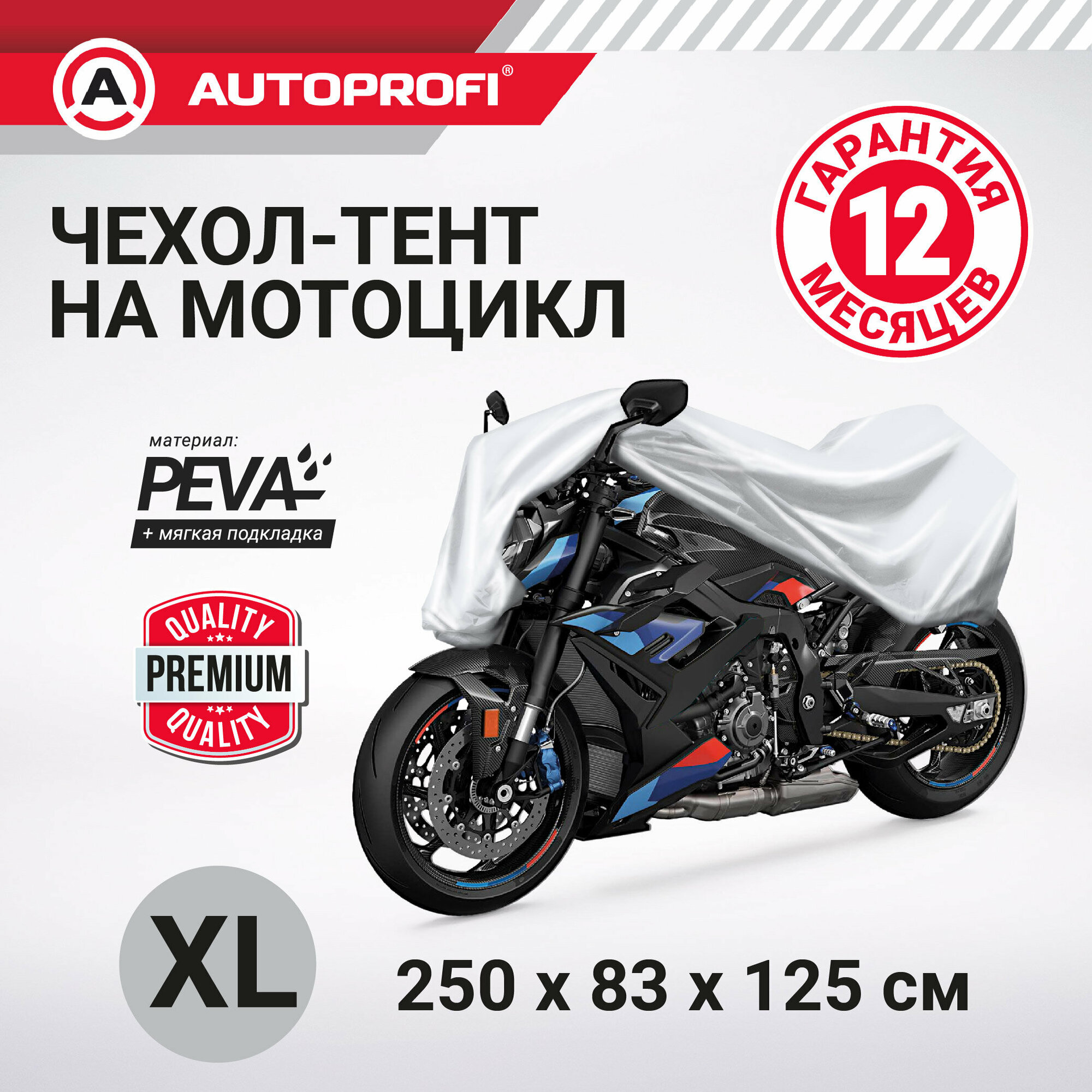 Отзывы на Чехол-тент на мотоцикл AUTOPROFI водонепроницаемый серый, peva + мягкая подкладка, 250x83x125 см MTB-600 (XL)