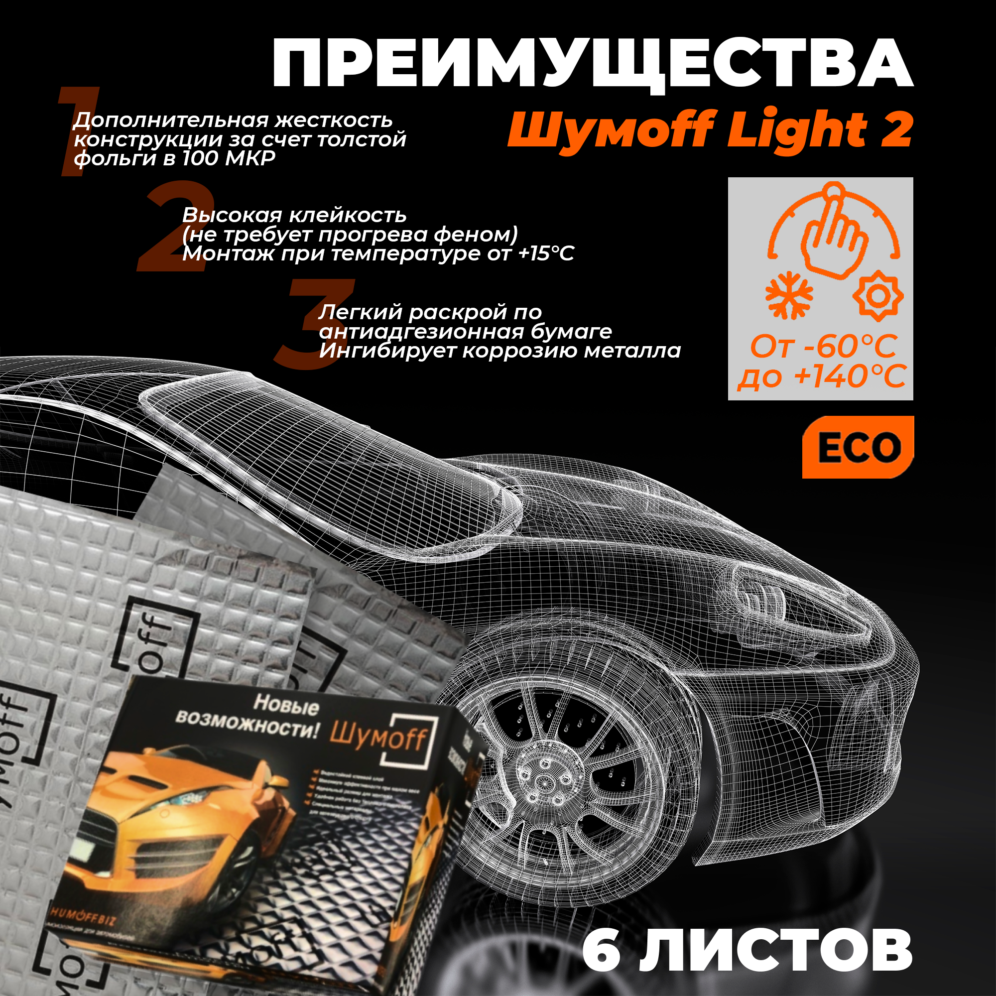 10 цен на Шумоизоляция автомобиля, облегченная Виброизоляция Шумофф Light 2.0 - аналог вибродемпфера М2, лист 37x27см, комплект 6 листов