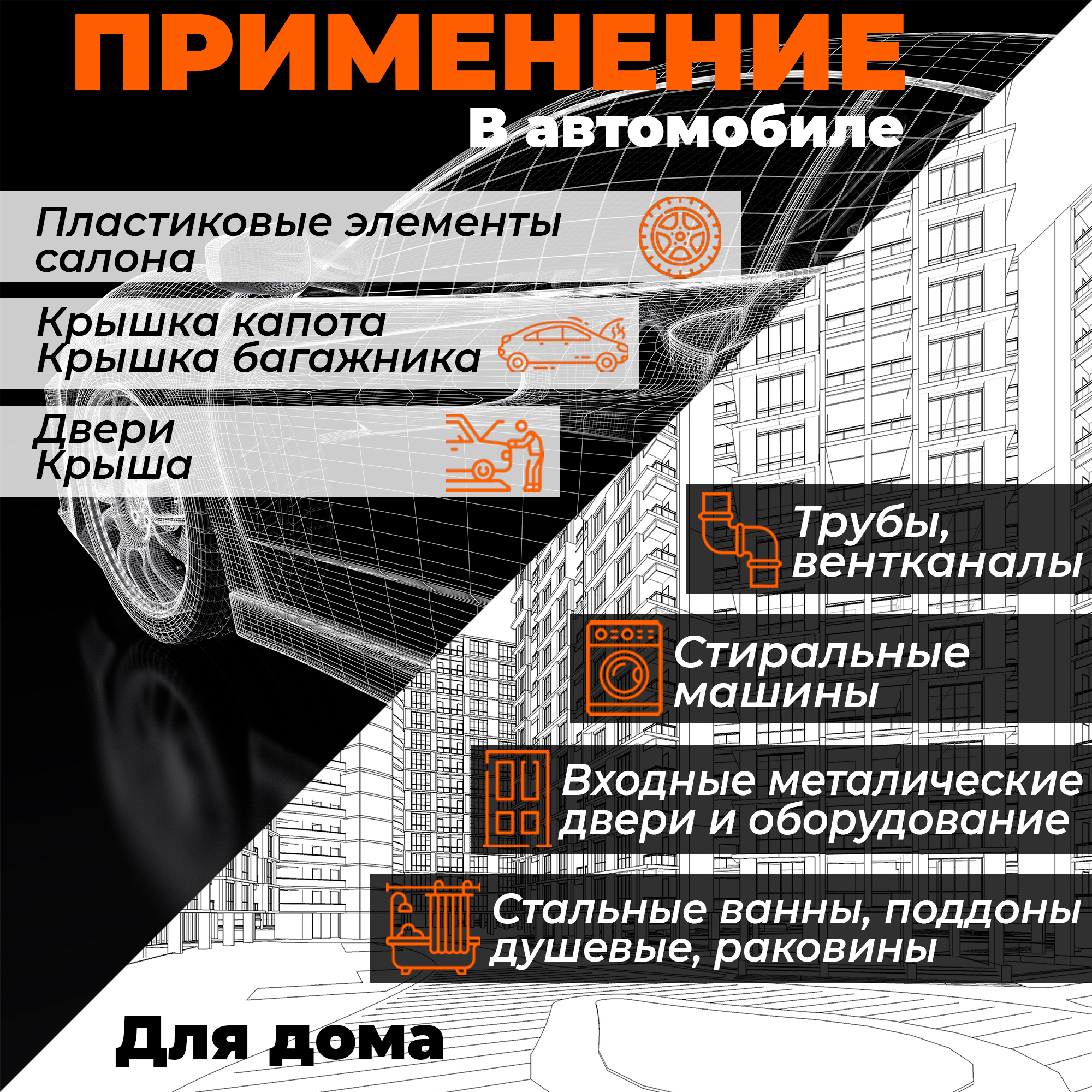 | Место применения | для пола / для капота / для багажника / для дверей / для потолка / для арок |