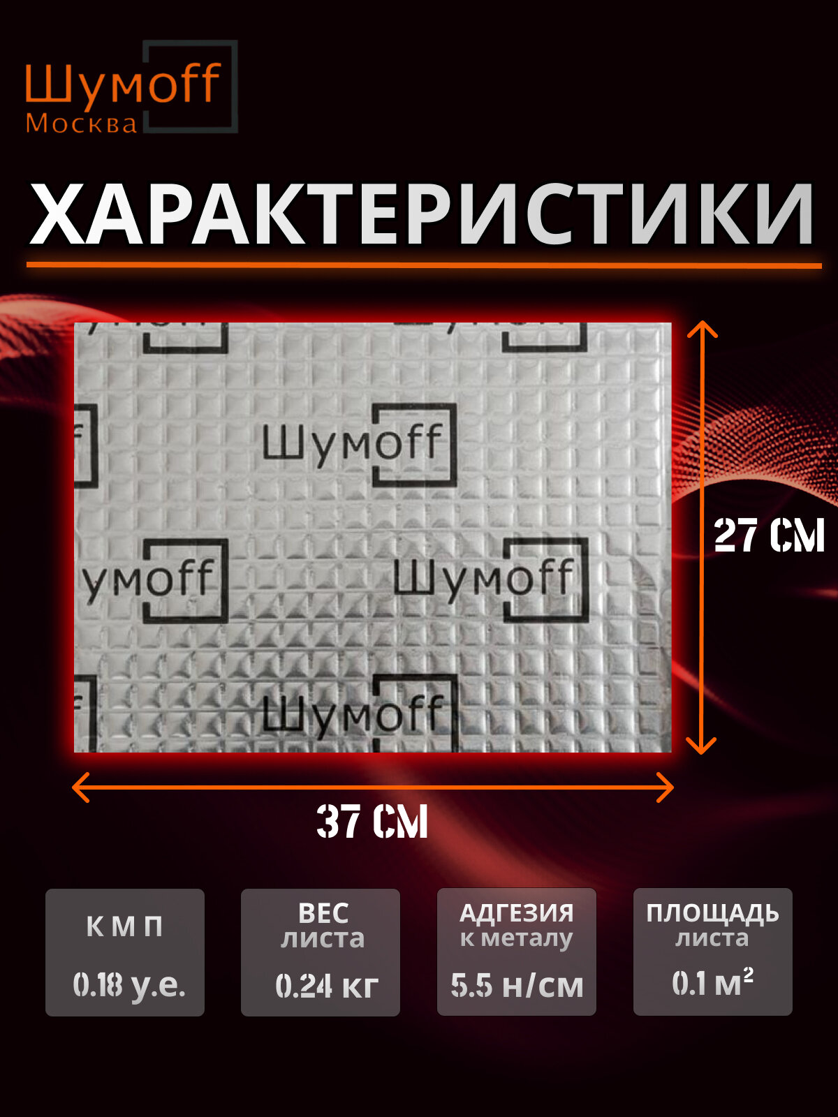 Вибродемпфирующий материал Шумофф М4 | 10 листов (1 кв.м) | Размер 27 x 37см| Шумоизоляция для автомобиля 1 716 ₽