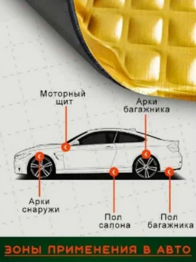 | Место применения | для пола / для капота / для багажника / для дверей / для потолка / для арок |