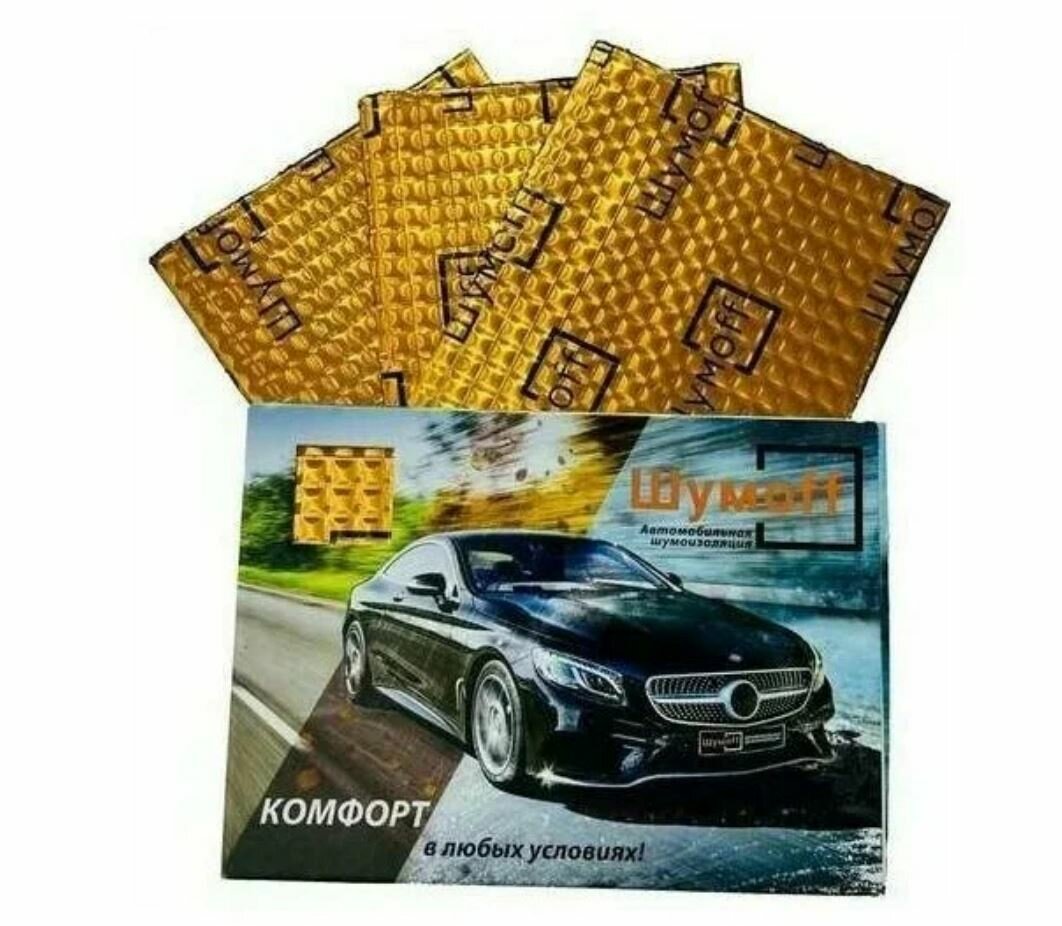 Шумоизоляция автомобиля Шумоff М4 / Виброизоляция 4мм Шумофф М4 | 1 уп. - 12 листов (1,2м.кв) | Размер листа 37*27см / Подарок на новый год