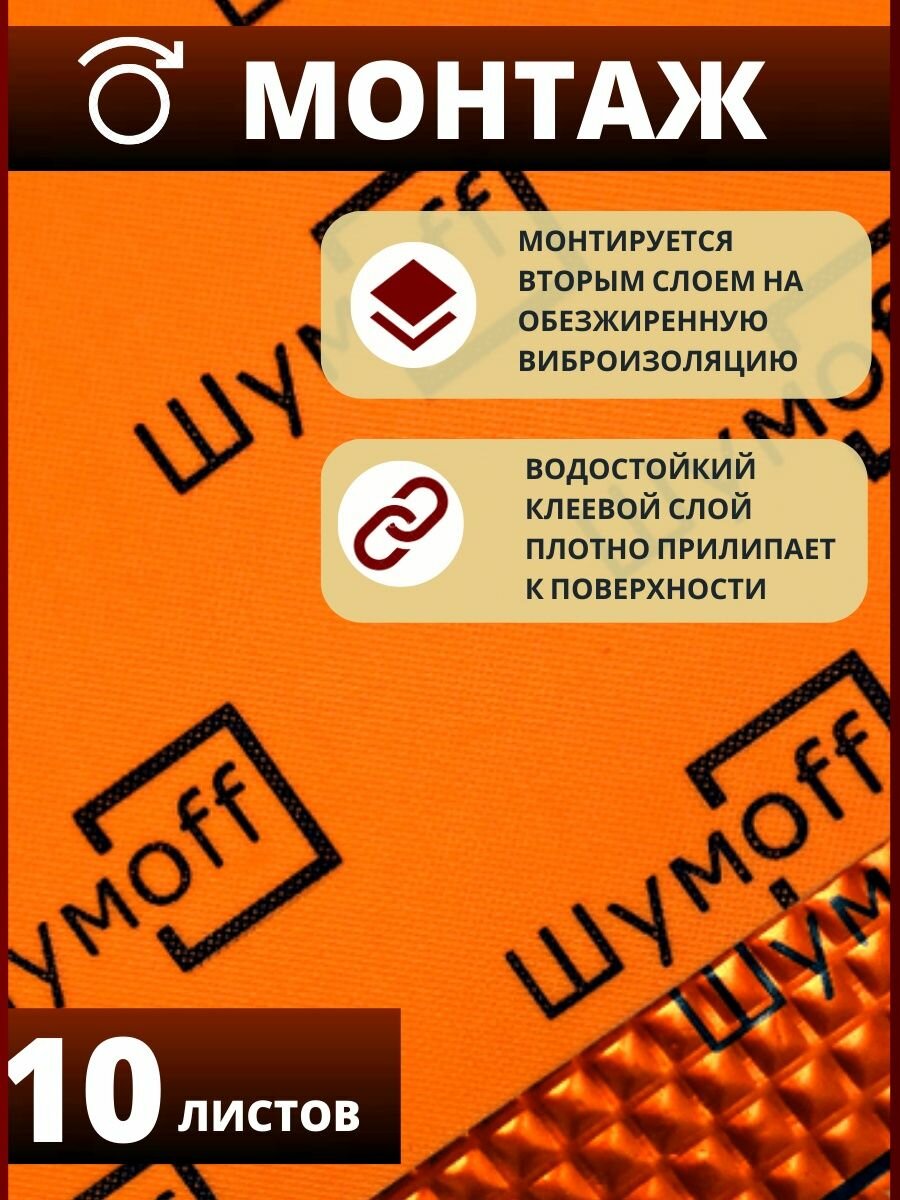 Шумоизоляция Шумофф М3 / Виброизоляция для автомобиля / 10 Листов / Шумоизоляция автомобиля для пола, дверей, крыши