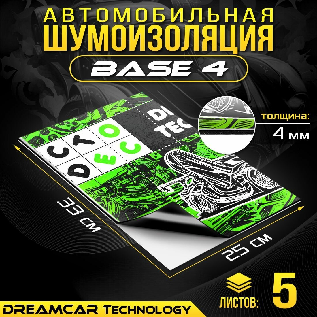DreamCar Technology 10 листов - Виброизоляция облегченная DreamCar Base 33x25см 4мм - 10 листов 949 ₽