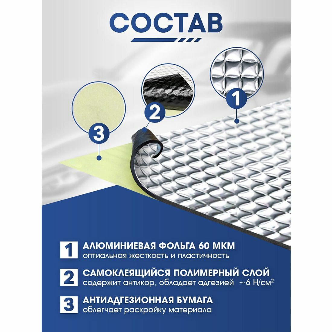 Шумоизоляция для автомобиля самоклеящаяся DreamCar Eco 3мм, 5 больших листов 680*500мм, виброизоляция для авто 1 449 ₽