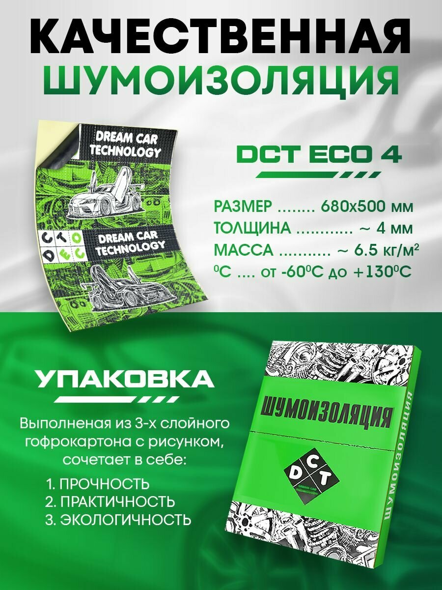 Шумоизоляция для автомобиля DreamCar Eco 4мм, 1 большой лист 680*500мм / Виброизоляция для авто самоклеящаяся информация: