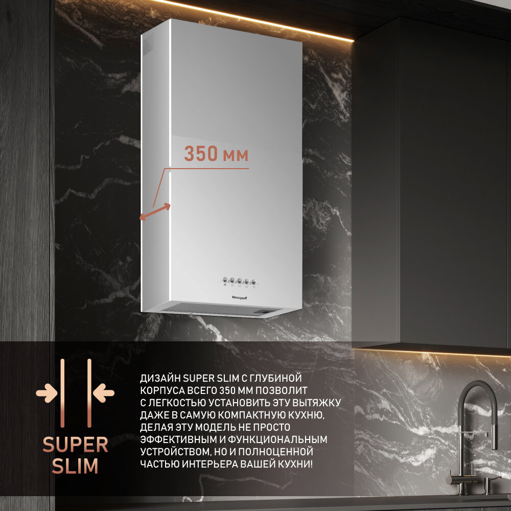 Отзывы на Купольная вытяжка Weissgauff Box 40 PB White, Производительность 900 м3/ч, Низкий уровень шума, LED-освещение
