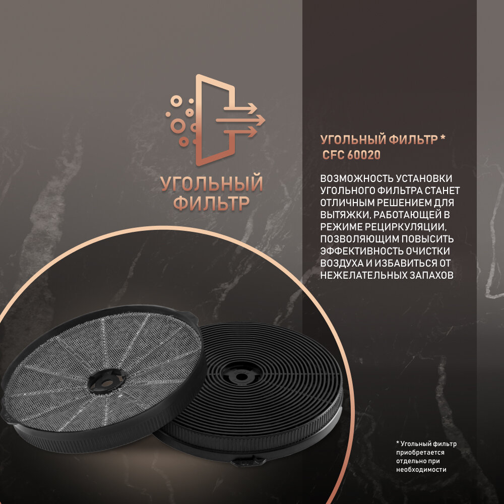 Вытяжка цилиндрическая пристенная Weissgauff Irida Bl алюминиевый жировой фильтр, Низкий уровень шума информация: