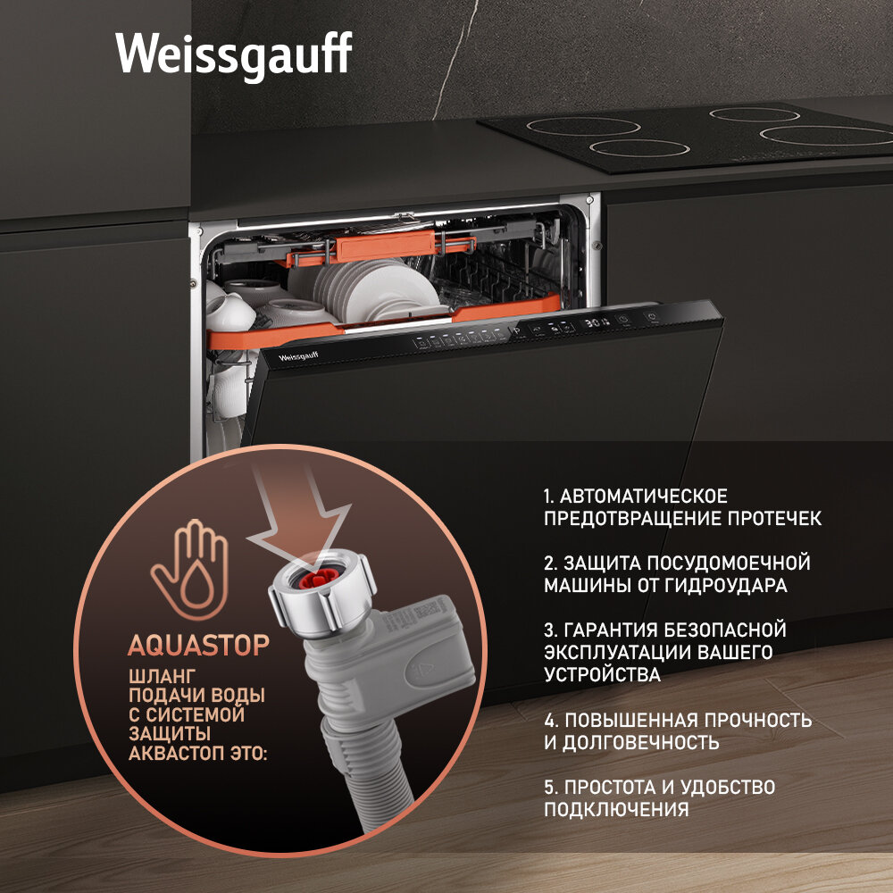 Встраиваемая посудомоечная машина с лучом на полу Weissgauff BDW 6037 Inverter AutoOpen Infolight, Гарантия 3 года 42 385 ₽