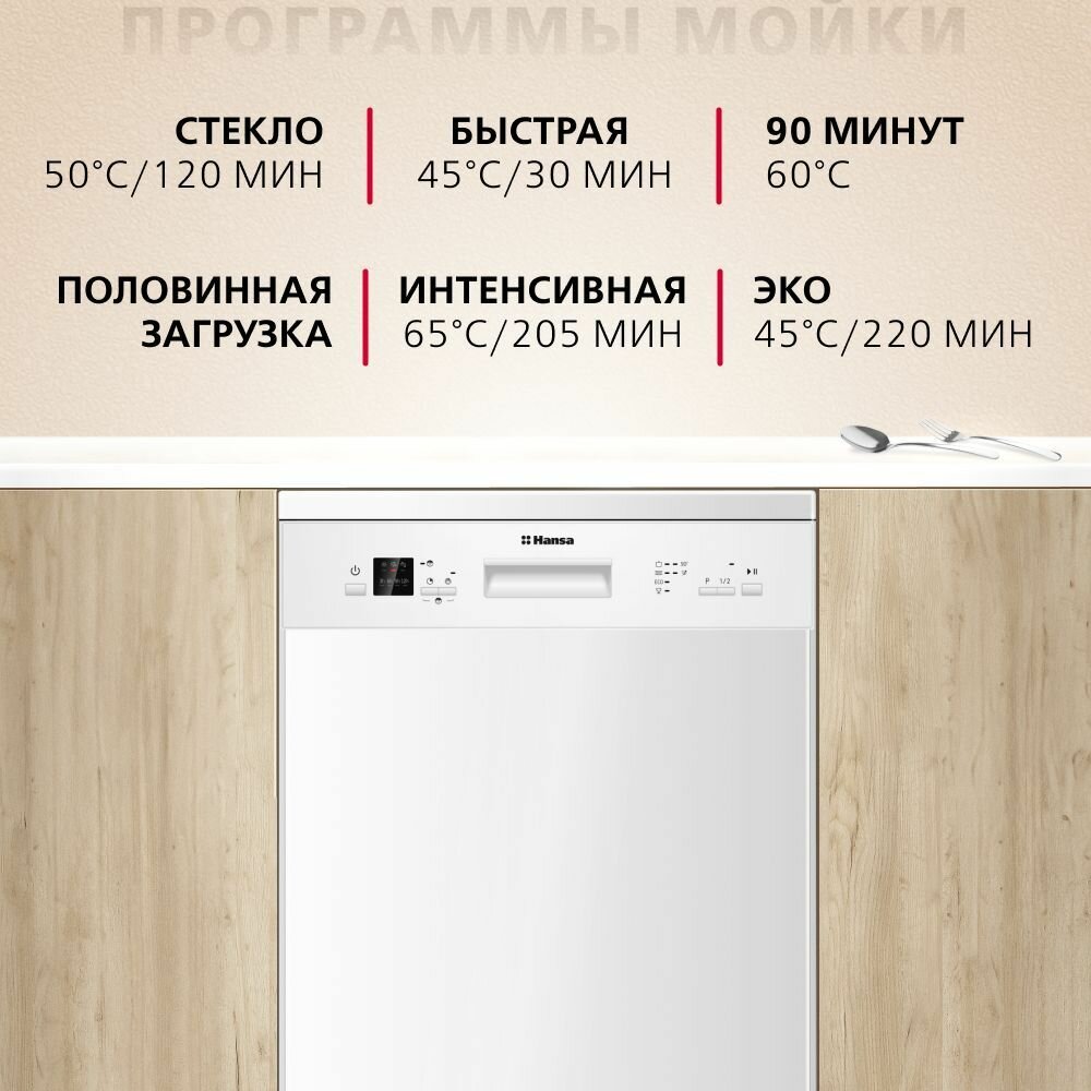 Посудомоечная машина Hansa ZWM656WEH, 60 см, с защитой от протечек, 6 программ, с 3 корзинами, блокировка управления, с режимом половинной загрузки 37 791 ₽